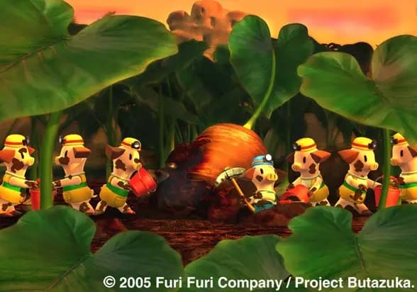 Butazuka (Pig Mound) narodziła się po tym, jak TEI brała udział w projektowaniu zabawek dla Sony Creative Products w 2003 roku do ich wirtualnej animacji, Vanimal Zoo. W 2005 roku animacja 3D została wyemitowana przez Yahoo! JAPONIA. W grudniu tego samego roku VAP wydała DVD Butazuka zawierające 13 historii.(Źródło: Okosama-Star Inc.)*Tekst automatycznie przetłumaczony